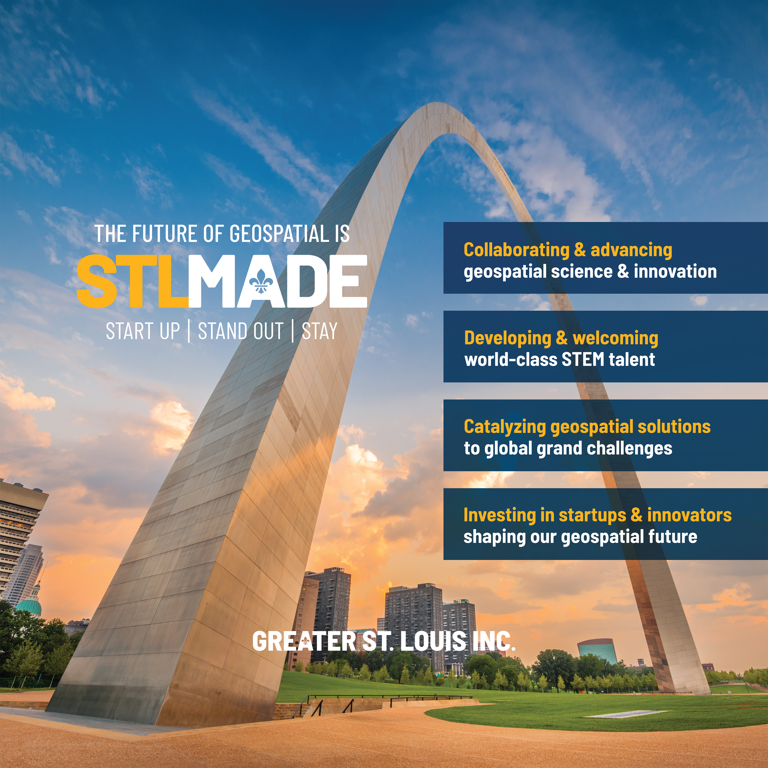St. Louis’ is excited to host this year’s FOSS4G NA Conference. Guided by the GeoFutures Strategic Roadmap, the community is boldly investing to make St. Louis the place where geospatial companies, innovators, startups and tech talent come together to thrive. In addition to exploring the city’s many iconic attractions, FOSS4G attendees will have ample opportunities to network with the St. Louis community and learn about bold geospatial initiatives that are accelerating research and innovation to address global challenges and cultivating a STEM workforce that represents the diversity of our nation. More details to come.